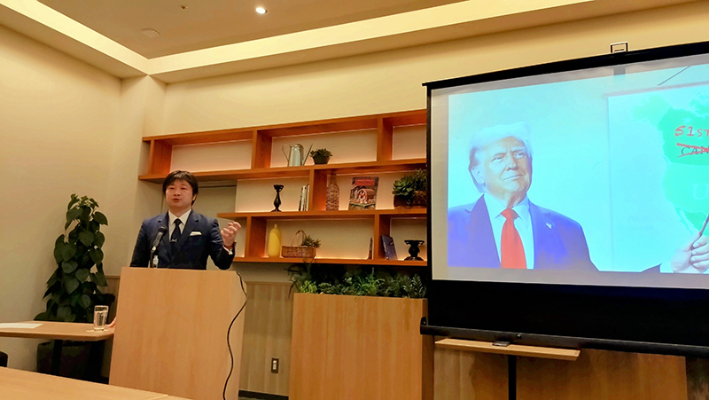 トランプ大統領と石破総理の初めての首脳会談を数時間後に控えるタイミングだったこのご講演では、2024年11月に行われた米国大統領選の情勢分析や、トランプ大統領後の国際情勢、日本への影響に関するお話をいただきました。