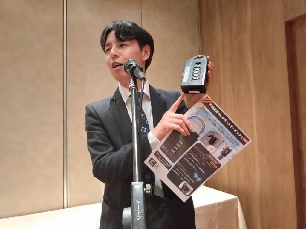 今回初めてご出席された、株式会社STコーポレーション代表取締役の手塚修太郎さんからは、不動産管理業務のご経験から、自らが特許を取られた新商品のキーボックスのご説明がありました。 卒業生の中にも「発明家」がいらっしゃるということも参加者一同、認識出来た次第です。